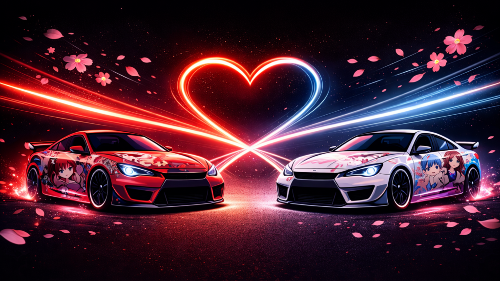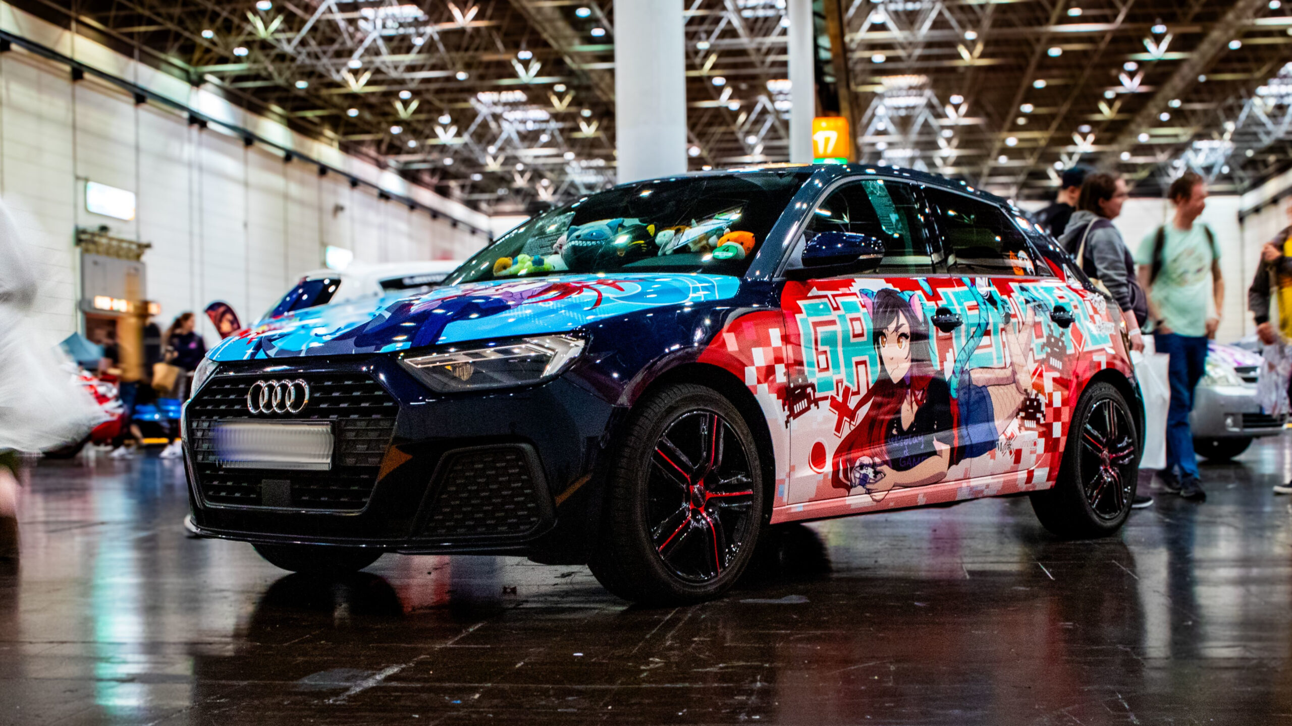 Itasha bezeichnet Fahrzeuge, die besonders auffällig foliert sind. Typischerweise mit Motiven aus den Bereichen Anime, Manga, Comic oder Gaming.